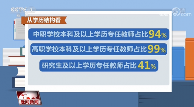 據(jù)介紹,全國職業(yè)學校專任教師規(guī)模從2012年的111萬人增加到2021年的129萬人,增幅為17%。從學歷結構看,中職學校本科及以上學歷專任教師占比94%,高職學校本科及以上學歷專任教師占比99%,研究生及以上學歷專任教師占比41%。