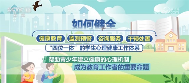 央視網(wǎng)消息:為了提前發(fā)現(xiàn)、干預(yù)學(xué)生心理問題,全國多地的大中小學(xué)校也在積極行動(dòng),強(qiáng)化心理監(jiān)測(cè)預(yù)警,整合社會(huì)資源,筑牢學(xué)生心理健康“防護(hù)墻”。