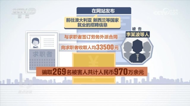 2023年5月,北京市房山區(qū)法院也判決了一起出國(guó)勞務(wù)詐騙案,被告李某波因詐騙罪一審判決13年6個(gè)月有期徒刑。判決書顯示:被告李某波等人冒用北京一家勞務(wù)派遣有限公司名義開(kāi)展業(yè)務(wù),在網(wǎng)站發(fā)布前往澳大利亞、新西蘭等國(guó)家就業(yè)的招聘信息,與求職者簽訂勞務(wù)外派合同,向求職者收取人均33500元的費(fèi)用,最終騙取269名被害人共計(jì)人民幣970萬(wàn)余元。檢察官還總結(jié)了這類詐騙案的幾個(gè)特點(diǎn)。