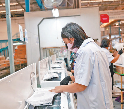 泰國員工在海爾空調(diào)生產(chǎn)線進行操作。