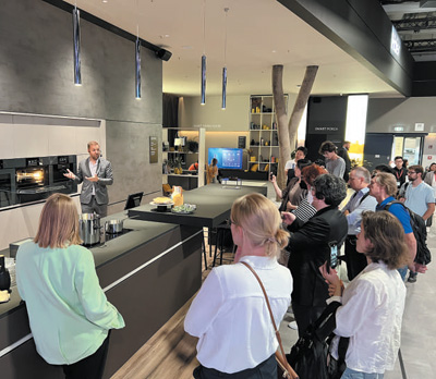 在2022年柏林國際消費電子展期間,參觀者在卡薩帝展臺前了解智能廚房設(shè)備。
