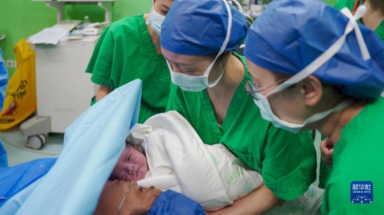 中國(guó)海軍“和平方舟”號(hào)醫(yī)院船執(zhí)行“和諧使命-2023”任務(wù)中的第3名“和平寶寶”在東帝汶誕生,新生兒與母親第一次見(jiàn)面(9月5日攝)。新華社發(fā)(李珂嘉賀 攝)