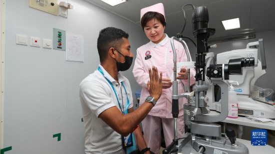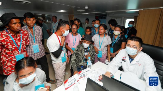 中國(guó)海軍“和平方舟”號(hào)醫(yī)院船訪問(wèn)東帝汶并開(kāi)展醫(yī)療服務(wù)期間,醫(yī)院船醫(yī)護(hù)人員為當(dāng)?shù)孛癖娞峁┽t(yī)療服務(wù)(9月8日攝)。新華社發(fā)(黎宇 攝)