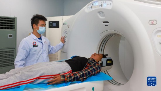 中國(guó)海軍“和平方舟”號(hào)醫(yī)院船訪問(wèn)東帝汶并開(kāi)展醫(yī)療服務(wù)期間,醫(yī)院船醫(yī)護(hù)人員為當(dāng)?shù)孛癖娺M(jìn)行CT檢查(9月6日攝)。新華社發(fā)(陳云飛 攝)