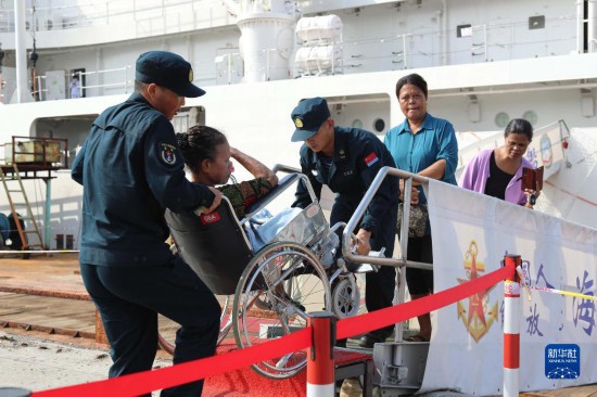 中國(guó)海軍“和平方舟”號(hào)醫(yī)院船訪問(wèn)東帝汶并開(kāi)展醫(yī)療服務(wù)期間,醫(yī)院船官兵為當(dāng)?shù)匦袆?dòng)不便的患者服務(wù)(9月6日攝)。新華社發(fā)(桂江波 攝)