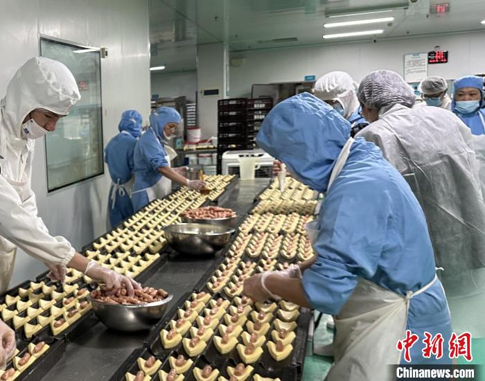 30年來,羅莎蛋糕已從湖南走向全中國,擁有300多家門店和2000多個(gè)員工。圖為員工在工廠做面包?!⒙?攝