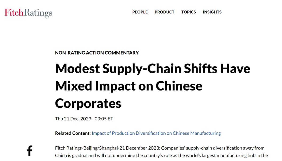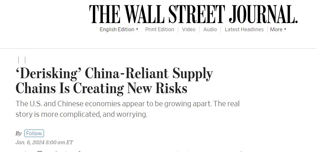 中國日報(bào)網(wǎng)1月8日電 美國《華爾街日報(bào)》網(wǎng)站報(bào)道稱,最新研究揭示了美西方針對中國供應(yīng)鏈實(shí)施“去風(fēng)險(xiǎn)化”政策的實(shí)際效果。初步結(jié)論令人擔(dān)憂:旨在打造彈性供應(yīng)鏈的相關(guān)措施,可能是虛幻的。結(jié)果將導(dǎo)致全球供應(yīng)鏈變得更為復(fù)雜,反而會(huì)產(chǎn)生新的風(fēng)險(xiǎn)。