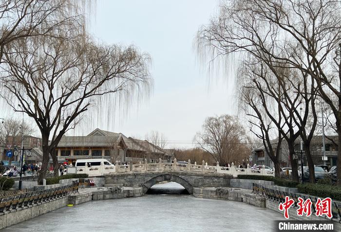 2023年2月22日,眺望位于北京市西城區(qū)的“北京中軸線第一橋”——萬寧橋。萬寧橋始建于元代,為單孔石拱橋,橫跨在什剎海前海東岸的玉河上,西鄰什剎海前海,是《北京中軸線保護(hù)管理規(guī)劃(2022年—2035年)》確定的遺產(chǎn)區(qū)要素之一。中新社記者侯宇攝