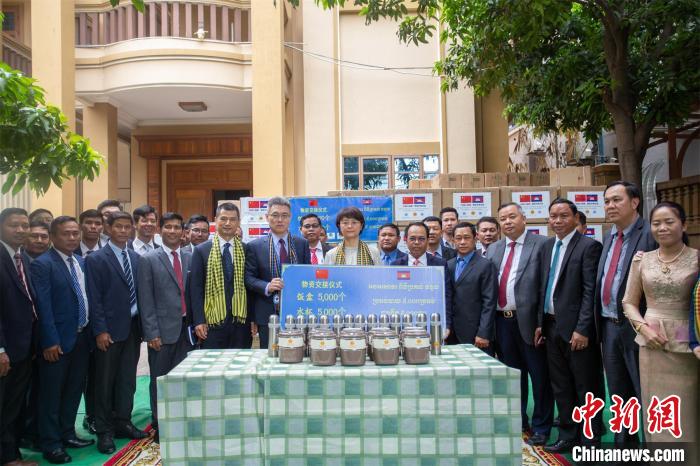 圖為中方向柬方移交捐贈(zèng)物資。主辦方供圖