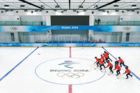 昨天上午,在冬奧冰球項(xiàng)目場地國家體育館訓(xùn)練場,清雪服務(wù)人員“雪童”練習(xí)快速清雪,準(zhǔn)備迎接比賽到來。 本報(bào)記者 鄧偉攝