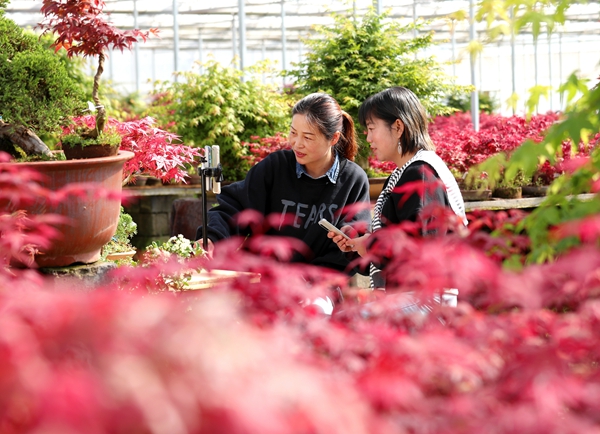 堰下村只是沭陽(yáng)縣大力推動(dòng)“產(chǎn)業(yè)+創(chuàng)業(yè)+就業(yè)”的縮影。沭陽(yáng)縣發(fā)改局局長(zhǎng)喬德素介紹,截至目前,沭陽(yáng)縣吸引花木生產(chǎn)核心區(qū)70%以上的大學(xué)畢業(yè)生選擇返鄉(xiāng)創(chuàng)業(yè),當(dāng)?shù)剡€與淘寶合作建立“淘寶·沭陽(yáng)直播基地”,吸引了一批新生代參與到花木產(chǎn)業(yè)鏈中。當(dāng)?shù)赝ㄟ^(guò)實(shí)施“遠(yuǎn)程網(wǎng)店”工程,讓農(nóng)民“觸網(wǎng)”,將手機(jī)變身“新農(nóng)具”、直播變成“新農(nóng)活”,直播帶貨成為了沭陽(yáng)花木銷(xiāo)售的新時(shí)尚。