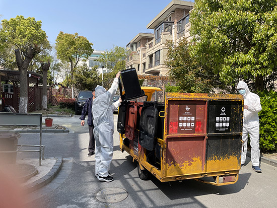 除了保安,保潔人員也缺位了。4月7日,姚書記找居委會(huì)要來十幾個(gè)垃圾桶,組織志愿者收集垃圾。因?yàn)?天沒收過垃圾,垃圾又多又臭。高杰、趙連均、俞衛(wèi)忠等志愿者沖在前面,他們一改平日“西裝革履”的打扮,化身“保潔員”,當(dāng)被問及“4天不收的垃圾臭不臭”時(shí),他們笑笑說,“又臟又臭是真的,不過大家都換位思考,我們就收幾次而已,環(huán)衛(wèi)工人每天干才辛苦?!敝?,小區(qū)每天就有鄰居輪流收垃圾,做到日產(chǎn)日清。一位鄰居在群里反映巡邏時(shí)發(fā)現(xiàn)路上落葉較多時(shí),大家又一呼百應(yīng),拿出自家的掃帚,一起把小區(qū)道路打掃干凈。