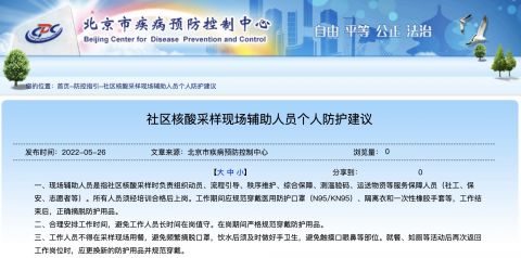 北京:社區(qū)核酸采樣輔助人員未穿二級防護(hù)不得入采樣區(qū)