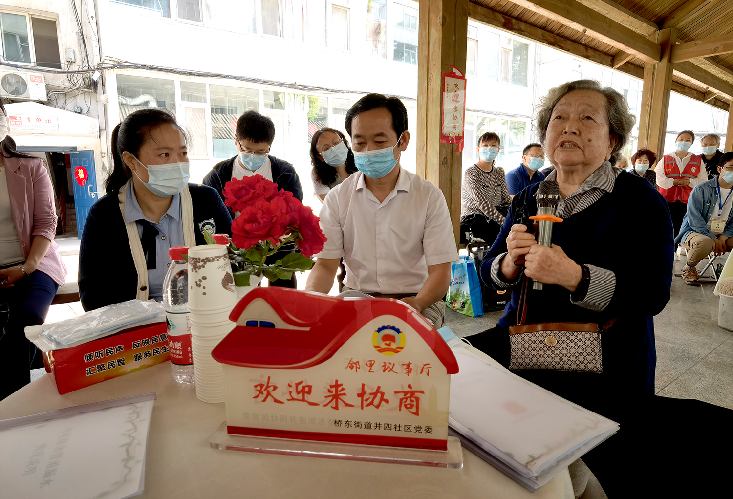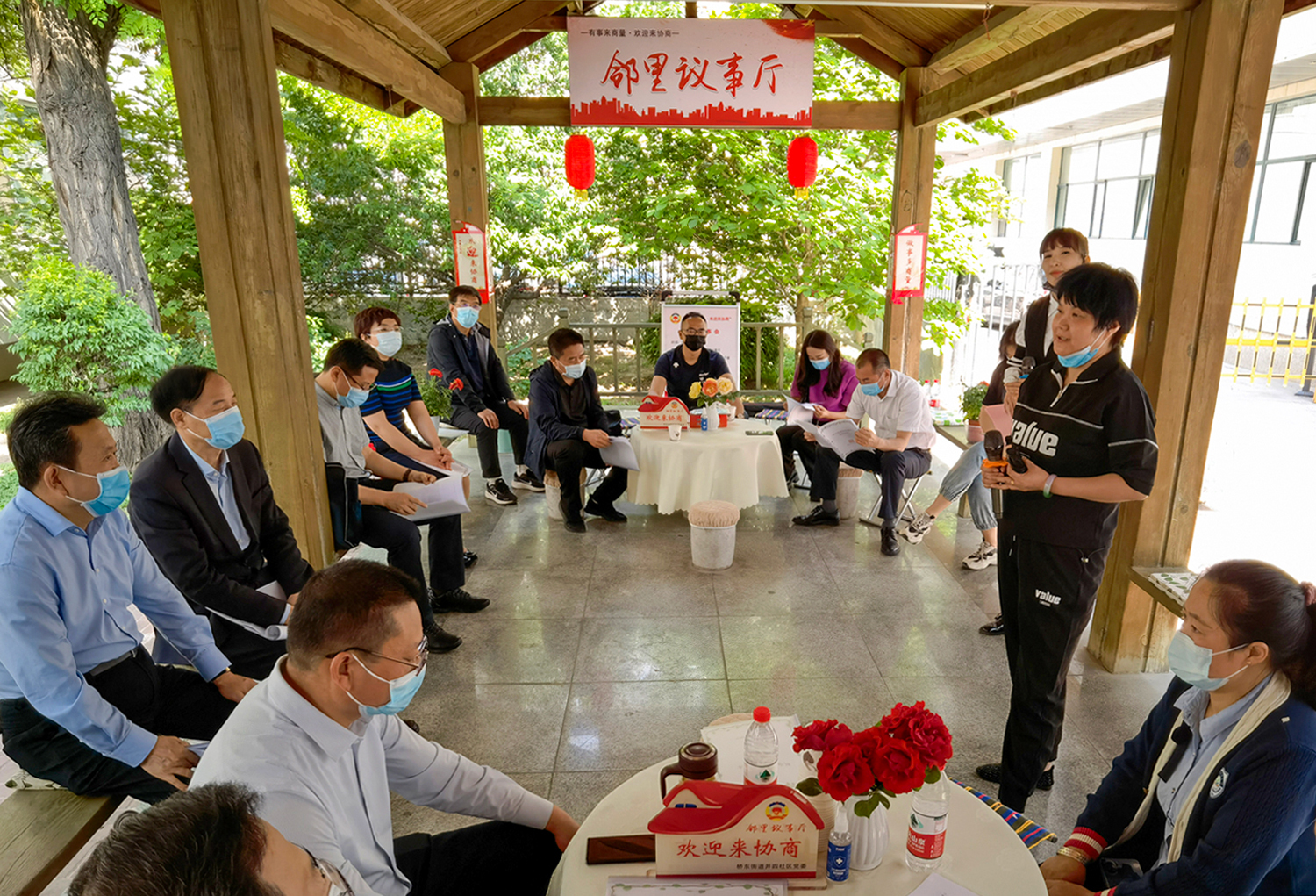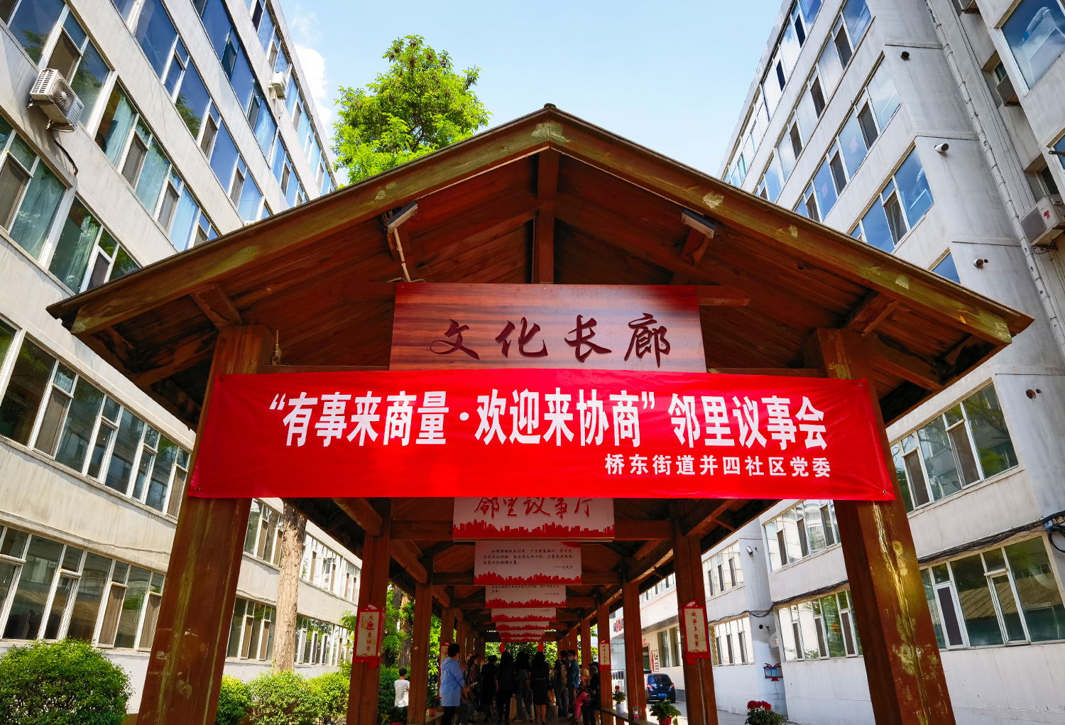 初夏。太原市迎澤區(qū)橋東街道并四社區(qū)新生里89號院,文化長廊里支起了三張“議事桌”。兩側(cè)長廊不夠坐,前排“見縫插針”擺上了小馬扎,來自街道社區(qū)、物業(yè)、居民和政協(xié)委員等各方面的代表圍坐在一起,“鄰里議事會(huì)”開場了。