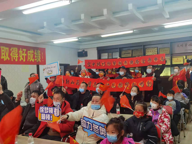 徐夢桃參加的每一場北京冬奧會比賽,她的啟蒙教練、家鄉(xiāng)人民和小運動員們都在鞍山市軍事體育學院為她加油助威。胡婧怡攝