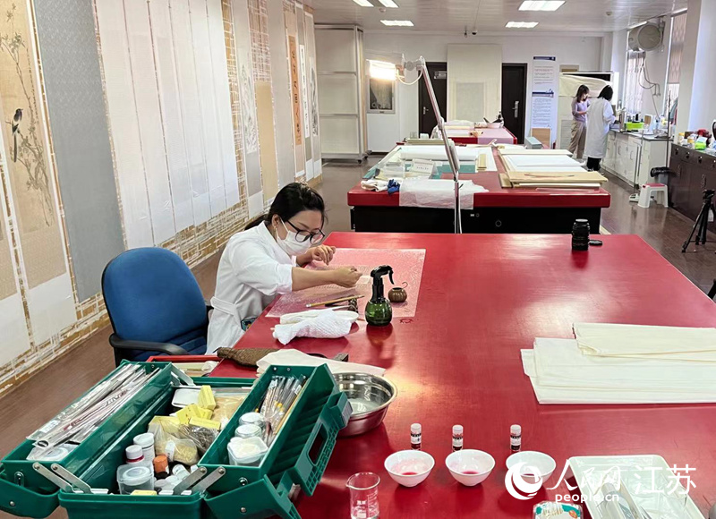 現(xiàn)在,越來越多的年輕人加入到這份彰顯情懷和定力的工作中來。陳思燚說,“我們就是‘書畫醫(yī)生’,修復(fù)書畫的過程,就是給文物看病治療的過程?!蹦壳?,在南博從事書畫修復(fù)工作的團隊已有9人,主要以80后、90后為主力。