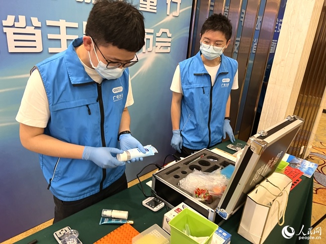 活動現(xiàn)場對消費者點名的化妝品產(chǎn)品進(jìn)行快速檢測。人民網(wǎng) 吳舟攝