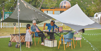 “三五好友結(jié)伴而行,喝茶賞景,好不愜意。”程曉說,“現(xiàn)在市場上有很多比較成熟的露營產(chǎn)品可選擇,有的只提供帳篷等設(shè)備,需要自備餐食,有的是全包,吃住游所需都準(zhǔn)備好了,還有些個性化的產(chǎn)品會提供桌游、羽毛球等休閑項(xiàng)目?!痹隗w驗(yàn)過幾次露營后,程曉正打算帶上父母一起戶外郊游。
