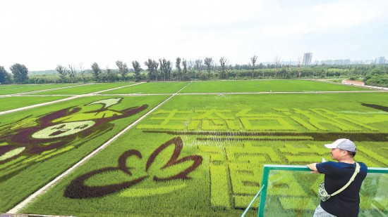 田園畫(huà)卷 青翠宜人 巨幅稻田畫(huà)添彩臺(tái)湖