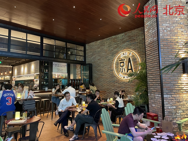 除了火鍋店,一家名為“京A Taproom”的美式精釀啤酒餐吧也熱鬧十足。美式工業(yè)風的裝潢極具格調,炸雞配啤酒的組合也頗有人氣。“這里的氛圍我很喜歡,小吃和啤酒也很對我的胃口,來這里能夠忘掉那些煩惱和壓力?!崩钆吭诠ぷ髁艘惶熘?,邀約了朋友一起來這家餐吧放松心情。
