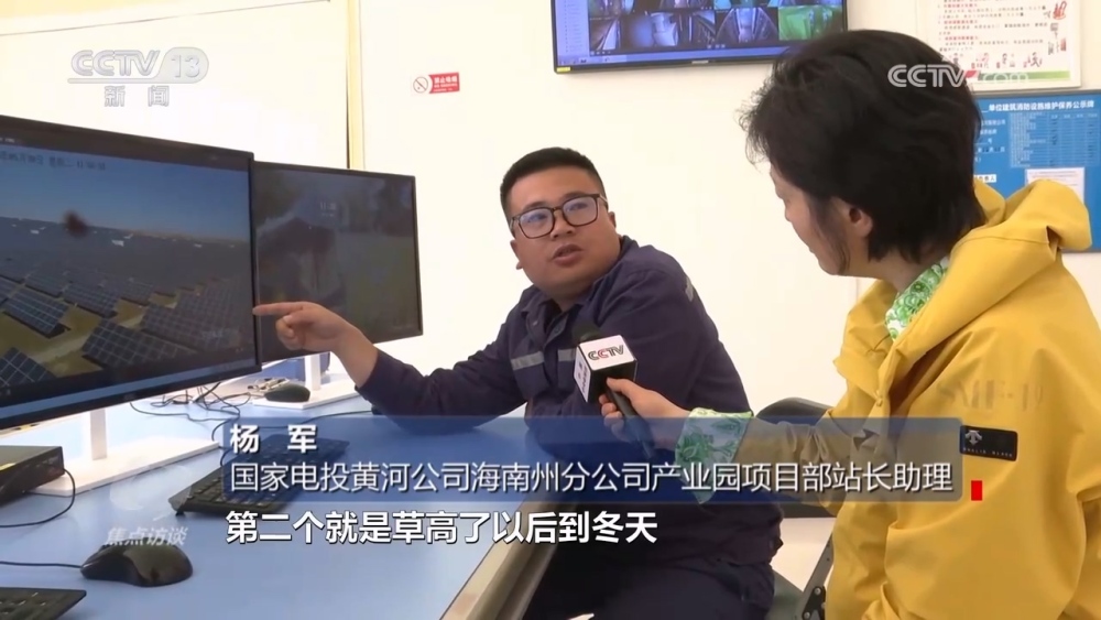 國(guó)家電投黃河公司海南州分公司產(chǎn)業(yè)園項(xiàng)目部站長(zhǎng)助理?xiàng)钴姡骸肮夥逑旅孢@些羊,就是我們請(qǐng)過(guò)來(lái)幫忙除草的。因?yàn)槊磕暌坏较奶?,園區(qū)電池組件下面草就特別高,長(zhǎng)高了以后會(huì)遮擋電池組件,一個(gè)是影響發(fā)電效率,再一個(gè)秋冬季有火災(zāi)隱患。”