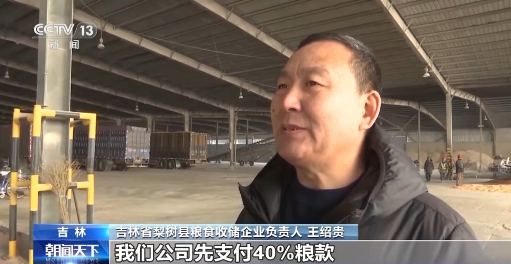 吉林省梨樹(shù)縣糧食收儲(chǔ)企業(yè)負(fù)責(zé)人 王紹貴:合作社或者是種糧大戶可以先把糧送到我們公司,我們公司先支付40%糧款,剩余部分賣(mài)糧戶可以在合適的價(jià)格,確定價(jià)格之后再一起結(jié)算。