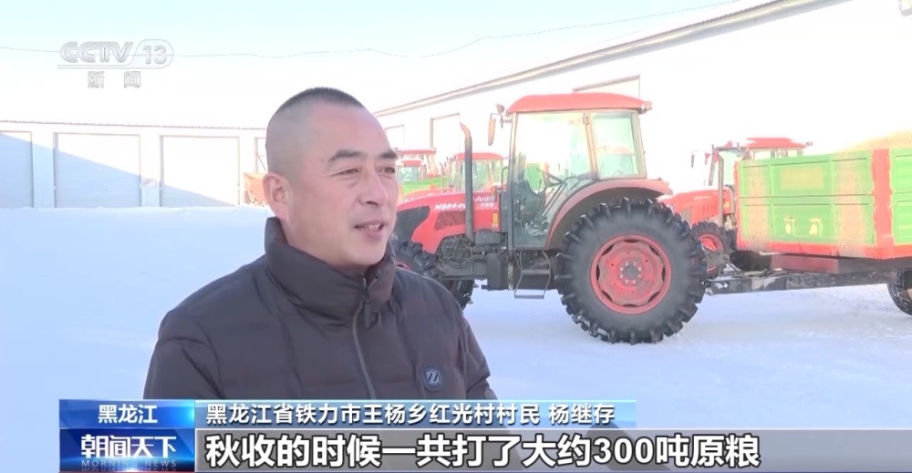 黑龍江省鐵力市王楊鄉(xiāng)紅光村村民 楊繼存:秋收的時(shí)候一共打了大約300噸原糧,這兩天價(jià)格好,趕緊到合作社把糧食賣(mài)了,賣(mài)個(gè)好價(jià)過(guò)個(gè)好年。