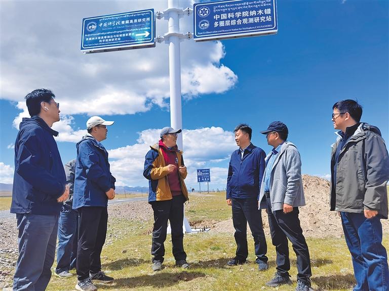 圖為科技部科學(xué)普及司工作人員和援藏專家一行,在當(dāng)雄縣調(diào)研中國科學(xué)院納木錯(cuò)多圈層綜合觀測(cè)研究站、國家電網(wǎng)公司西藏羊八井高海拔試驗(yàn)基地。記者 李洲 攝
