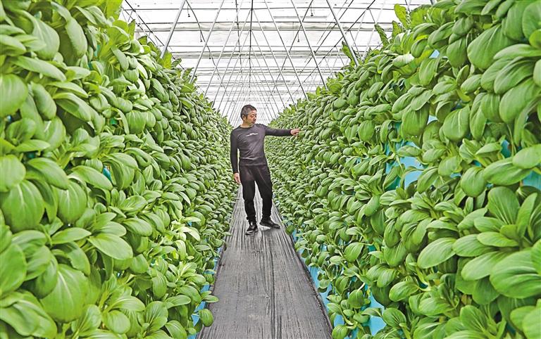 圖為那曲市浙江產(chǎn)業(yè)援藏精準(zhǔn)扶貧示范基地的工作人員查看氣霧栽培蔬菜的長(zhǎng)勢(shì)。 記者 次旺 攝