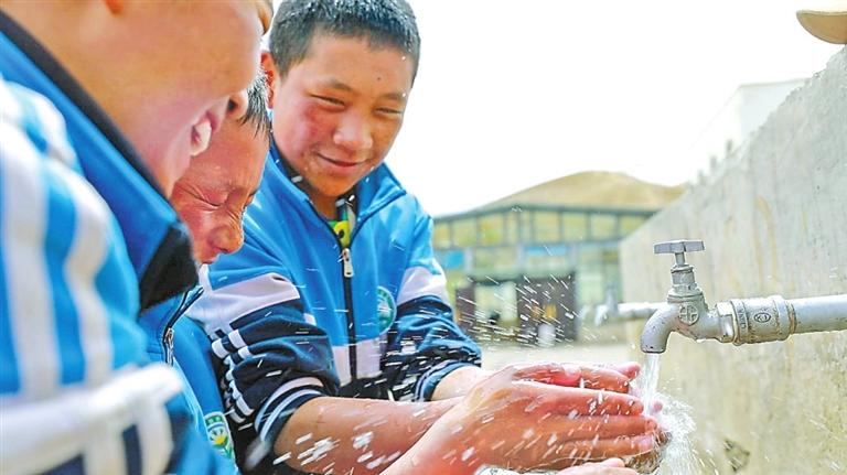謝通門縣縣城自來水管網(wǎng)升級改造后,學生用自來水洗手。