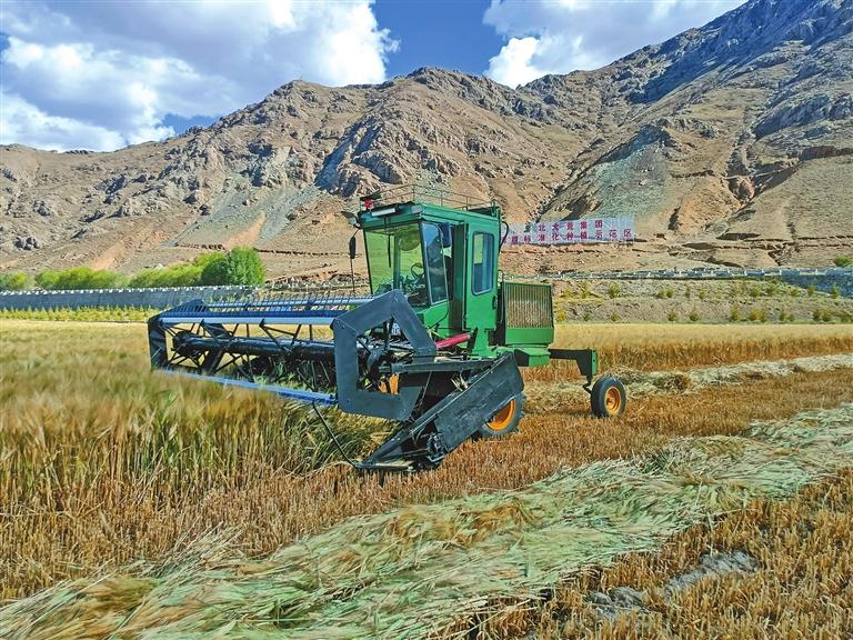 桑珠孜區(qū)甲措雄鄉(xiāng)聰堆村,藍天白云映襯之下,連片的青稞田青翠欲滴,這里是北大荒集團青稞標準化種植示范區(qū)。黑龍江省第八批援藏干部、日喀則市農(nóng)業(yè)農(nóng)村局副局長于志剛介紹,北大荒集團是中國農(nóng)業(yè)現(xiàn)代化的排頭兵,農(nóng)業(yè)機械化、智能化、信息化、高端化領(lǐng)跑全國。為此,在黑龍江援藏工作隊的積極協(xié)調(diào)溝通和大力支持下,2020年10月北大荒集團鶴山農(nóng)場在仁布縣青稞增產(chǎn)試驗示范項目(投資100余萬元,畝產(chǎn)提升65斤,人均增收160元)研究的基礎上,在日喀則市桑珠孜區(qū)甲措雄鄉(xiāng)聰堆村成功流轉(zhuǎn)土地建設青稞標準化生產(chǎn)示范基地。通過四年的試驗示范,北大荒青稞示范田已打造成為日喀則青稞標準化種植“樣板田”,成為全市重點關(guān)注項目。
