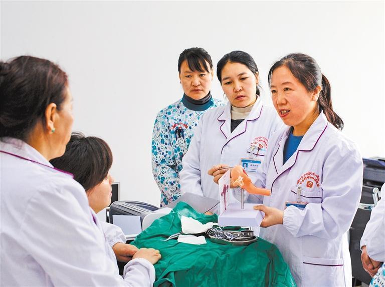 4月17日,山東援藏醫(yī)療專家、日喀則市婦幼保健院婦女保健部主任孔艷(右一)在現(xiàn)場帶教。在山東援藏的幫扶下,該院成功創(chuàng)建二甲醫(yī)院。經(jīng)濟(jì)日報(bào)記者 袁勇 攝