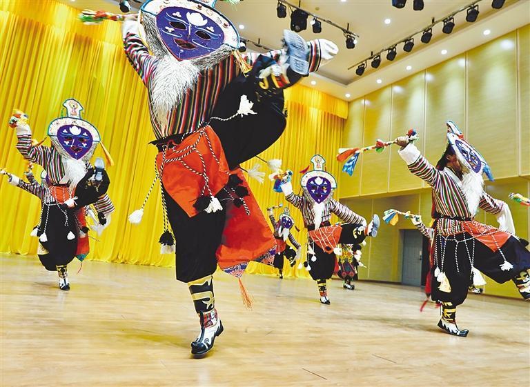 9月13日,日喀則市昂仁縣民間藝術(shù)團(tuán)演員在淄博援建的迥巴藏戲國家級(jí)非物質(zhì)文化遺產(chǎn)保護(hù)中心演出。經(jīng)濟(jì)日報(bào)記者 袁勇 攝