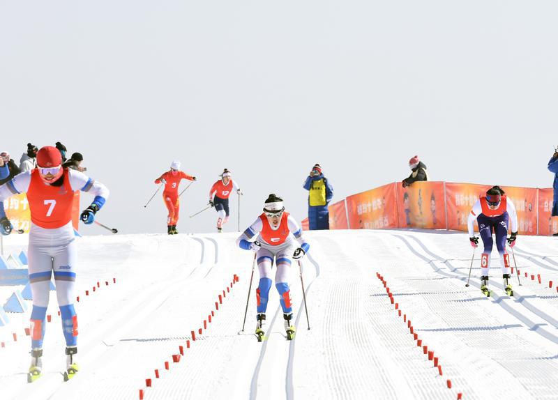 2月17日至27日,第十四屆全國冬季運動會在內(nèi)蒙舉行。圖為西藏自治區(qū)運動員格桑曲珍在越野滑雪青年組女子個人短距離(傳統(tǒng)技術(shù))賽中正在向終點沖刺。記者 洛桑 索朗群培 攝