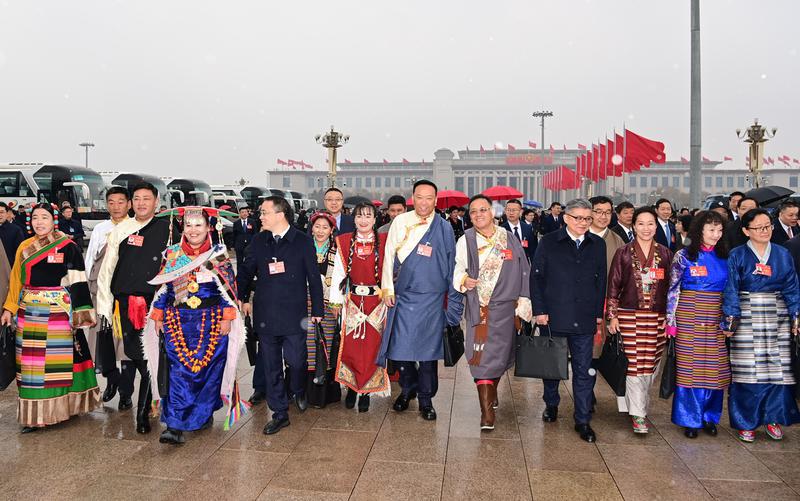 3月5日上午,十四屆全國人大二次會議在北京人民大會堂開幕。來自西藏自治區(qū)的全國人大代表們滿懷信心步入人民大會堂。記者 旦增西旦 攝