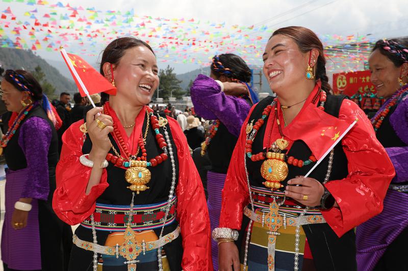 3月28日上午,吉隆出入境邊防檢查站移民管理警察與駐地各單位干部職工及廣大人民群眾共同開展系列活動紀(jì)念西藏民主改革 65 周年。圖為參加紀(jì)念西藏民主改革65周年系列活動的駐地群眾臉上洋溢著幸福的笑容。記者 旦增蘭澤 通訊員 索朗扎西攝