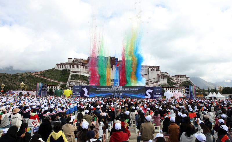 8月21日上午,2024中國西藏第五屆跨喜馬拉雅國際公路自行車極限賽在布達(dá)拉宮廣場開幕。記者 白瑪澤旺 攝