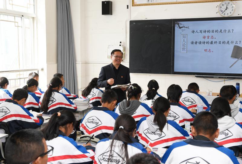 今年是對口支援西藏工作30周年。圖為江蘇省援藏教師、拉薩江蘇實驗中學(xué)校長殷飛正在授課。記者 旦增蘭澤 攝