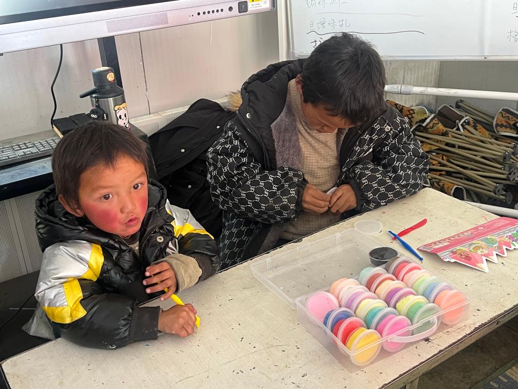 孩子們在“溫暖小屋”體驗(yàn)彩泥課程(1月21日攝)。新華社發(fā) 仁青永曾 攝