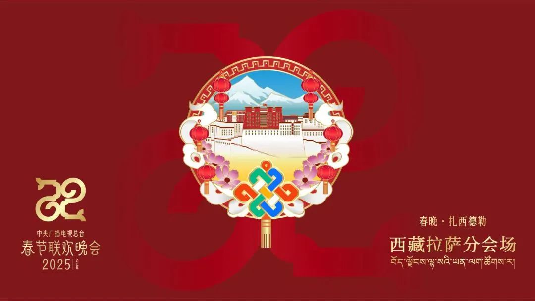 據(jù)介紹,總臺(tái)2025年春晚西藏拉薩分會(huì)場標(biāo)識(shí)以“春晚·扎西德勒”為主題,中心是布達(dá)拉宮與雪山,展現(xiàn)西藏風(fēng)光;外形為圓,寓意團(tuán)圓;四周融入長城紋樣,彰顯西藏與祖國不可分割。