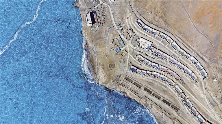 浪卡子縣打隆鎮(zhèn)推瓦村,南部與不丹接壤,邊界線長達25公里,是世界上海拔最高的純牧業(yè)行政村之一。全村共有40戶人家,153位村民在此生活。2月6日,記者踏入推瓦村,首先映入眼簾的是遠處的普姆擁措湖,湖面在陽光的照耀下波光粼粼,與錯落有致的雪山相互映襯,構(gòu)成一幅絕美的畫面。沿著平坦的柏油馬路前行,道路兩旁整齊排列的路燈和一排排以溫馨黃色為主色調(diào)的邊境小康房格外引人注目。漫步在臨近冰湖的村路上,悠然愜意之感油然而生,雪山、湖泊、村落與村民們和諧相融,共同繪就了一幅寧靜祥和的鄉(xiāng)村畫卷。
