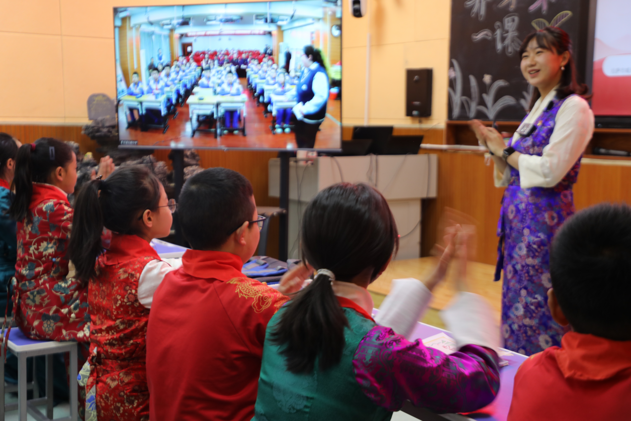 在課堂互動(dòng)中,西藏的同學(xué)紛紛道出自己的心聲,他們渴望前往首都,和北京的同學(xué)們面對面交流。拉薩市城關(guān)區(qū)海城小學(xué)六年(3)班央金巴宗說,“希望這次活動(dòng)能加深京藏兩地的關(guān)系,也希望民族團(tuán)結(jié)的種子在我們的心田生根、發(fā)芽;中華民族一家親,愿我們的國家更加團(tuán)結(jié)友愛!”