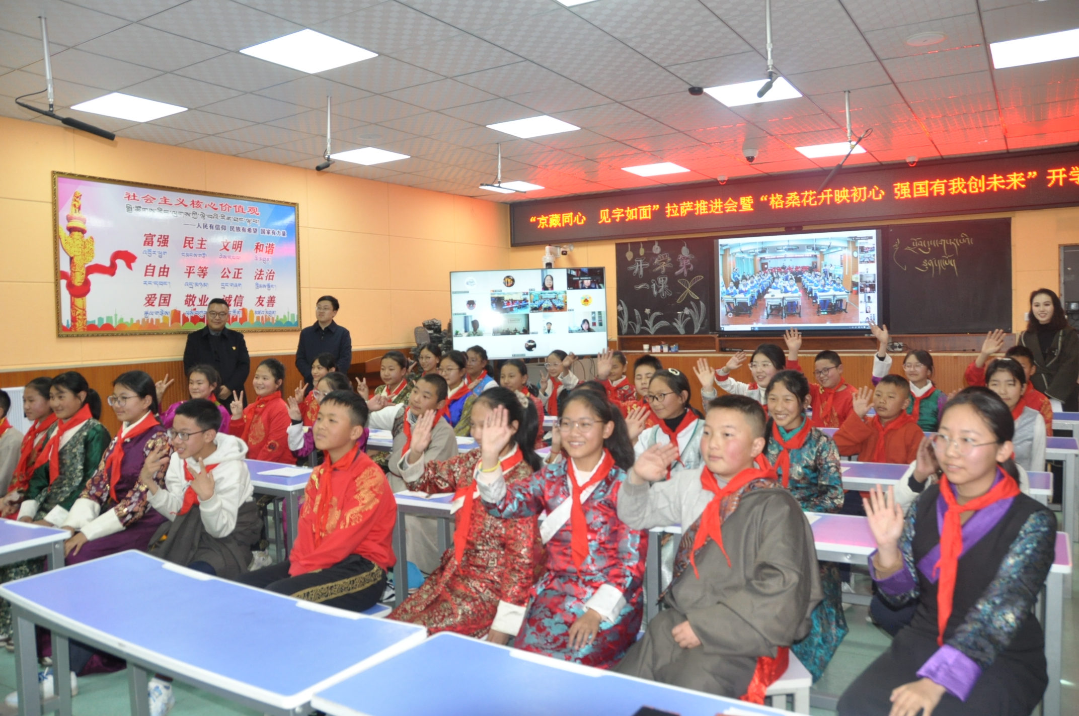 “我長大想當(dāng)一名消防員”“我長大想當(dāng)一名特種兵”……3月10日,來自西藏自治區(qū)拉薩市城關(guān)區(qū)海城小學(xué)和北京市懷柔區(qū)北房鎮(zhèn)中心小學(xué)的兩地師生通過線上直播形式,共上開學(xué)第一課。此次活動(dòng)也是北京市“融鑄式”教育支援協(xié)作的一次生動(dòng)實(shí)踐。