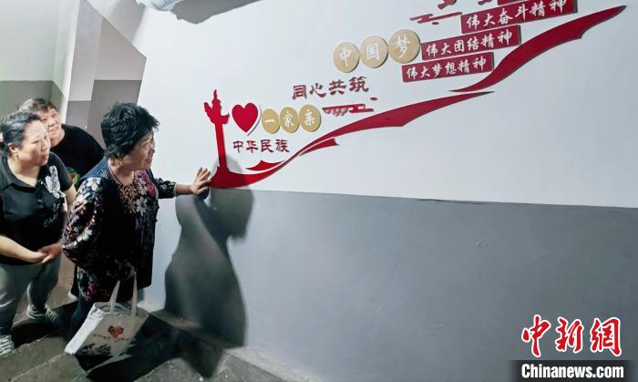 “樓里的每一處設(shè)計(jì),都凝聚著各族居民的智慧?!睆埞葐谈锌瑥臉桥茦?biāo)語到過道裝飾,居民們?nèi)虆⑴c設(shè)計(jì),樓道里的每句標(biāo)語都表達(dá)著他們心聲。