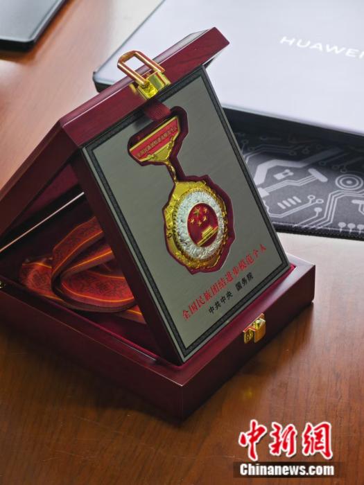 圖為孫樹(shù)學(xué)榮獲的全國(guó)民族團(tuán)結(jié)進(jìn)步模范個(gè)人獎(jiǎng)?wù)?中新網(wǎng) 薛凌橋 攝