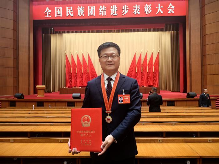 圖為孫樹(shù)學(xué)出席全國(guó)民族團(tuán)結(jié)進(jìn)步表彰大會(huì)。受訪者供圖