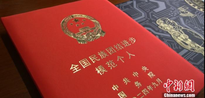 圖為孫樹(shù)學(xué)榮獲的全國(guó)民族團(tuán)結(jié)進(jìn)步模范個(gè)人證書(shū) 中新網(wǎng) 林勐男 攝