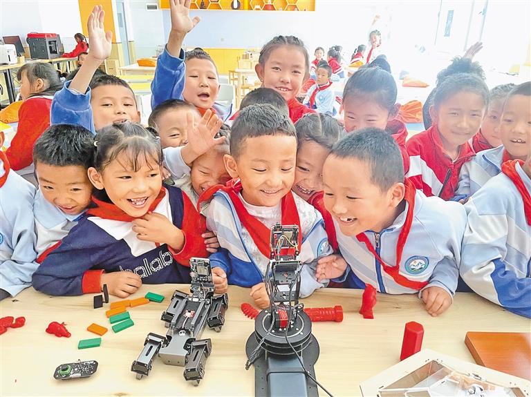 在桑珠孜區(qū)青島小學(xué)的科學(xué)課堂上,智能實(shí)驗(yàn)臺(tái)前圍滿了興致勃勃的孩子,他們手持 3D 打印筆,精心繪制著心中的“太空基地”。作為西藏首個(gè)啟動(dòng)“ STEM ”科學(xué)課程的地區(qū),這里不僅建成了全區(qū)首個(gè)小學(xué)科創(chuàng)實(shí)驗(yàn)室,還被教育部認(rèn)定為西藏唯一的全國“白名單”科創(chuàng)賽事基層組織單位?!耙郧埃⒆觽冎荒軓恼n本上了解實(shí)驗(yàn),現(xiàn)在能親手操作機(jī)器人、設(shè)計(jì)航天模型。”青島小學(xué)黨支部書記周杰介紹道。科創(chuàng)課程的開展,如同一把鑰匙,打開了孩子們創(chuàng)新思維和科學(xué)探索的大門,為高原青少年搭建起展示科學(xué)素養(yǎng)與創(chuàng)新能力的舞臺(tái),推動(dòng)當(dāng)?shù)亟逃聵I(yè)邁向新高度。