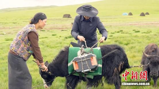 浙江援藏人員給牧民放牧的牦牛綁上“移動(dòng)式光儲(chǔ)一體微電站”設(shè)備。毛一豐 供圖