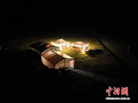游牧點(diǎn)帳篷在夜晚發(fā)出光亮。毛一豐 供圖